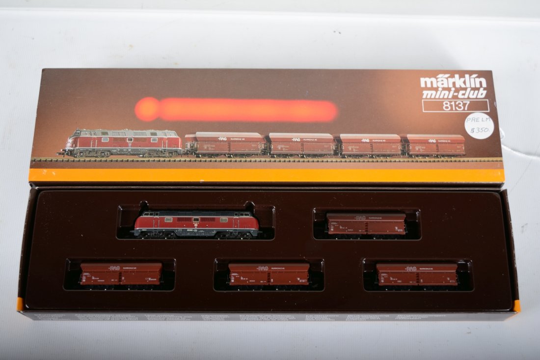 Lot Model Train ItemsMar 04, 2026Lot 9 Lionel O Gauge Train CarsMar 07, 2026Vintage HO Scale Model Train Freight Cars,1 day LeftVintage Lionel Trains, Accessories, & partsMärklin Electric and Diesel Locomotives in H0 GaugeMar 14, 20267pc HO Scale ROCO and Marklin Trans Europ Express Trains2 days LeftMarklin, 3 Rungenwagen 17725 days LeftMarklin, Triebwagen TW 12970/35 days LeftMarklin, Triebwagen TWE 129305 days LeftMarklin, 42470 Set Pullmanwagen Edelweiss & 39244 Dampflok 13 EST5 days LeftMärklin H0 Scale Carriage SetsMar 14, 2026Marklin, Langholzwagen 1961 & Hochbordwagen 18515 days LeftMarklin u.a., 8 Wagen5 days LeftMarklin, Grossguterwagen 50 Tons 18555 days LeftMarklin, Mitropa Speisewagen 1842 & Schlafwagen 18435 days LeftMarklin, 2 Personen- und ein Gepackwagen5 days Left