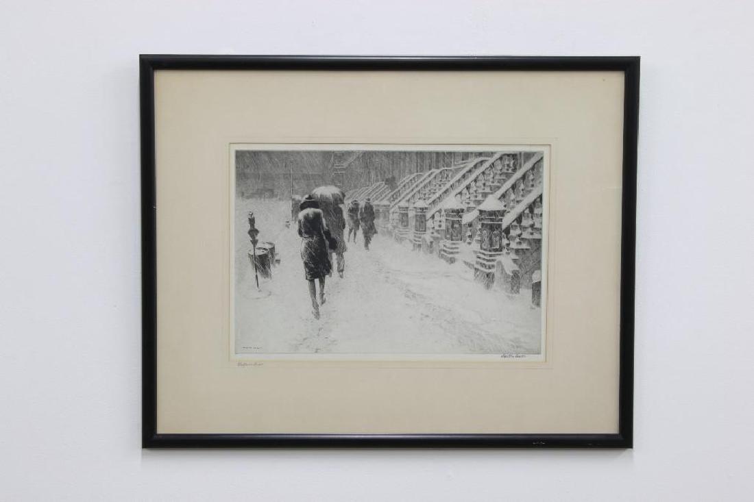 Martin Lewis Stoops in Snow Drypoint Etching Signed