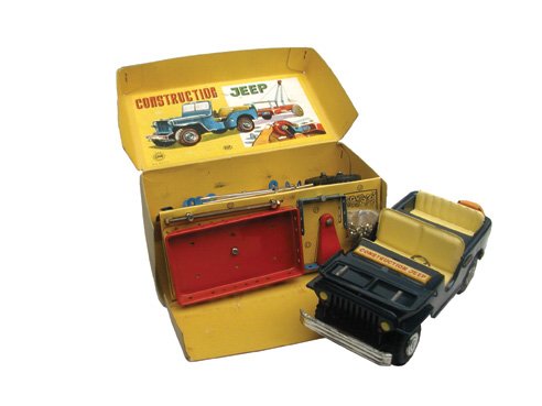 SoldJAPANESE TIN JEEPS (3)Litho tin; friction; (1) Military Police: Hadson; (1) construction: Yone Japan; (1) Delux: cloth fringe; normal wear; several scratches; L-6"-7", G-VGSee Sold Price