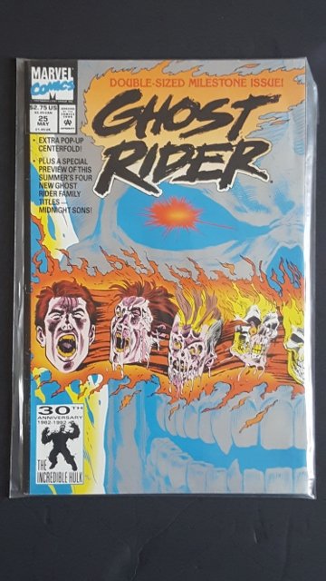 SoldGhost Rider #25 Marvel Comics 1992 Double-Sized Milestone Issue with a Pop-Up Centerfold comic bookPlease view photos for further description and condition considerations. Please know the scans may be darker or lighter than the actual item's true appearance. ACME Auctions combines shipping on multiSee Sold Price