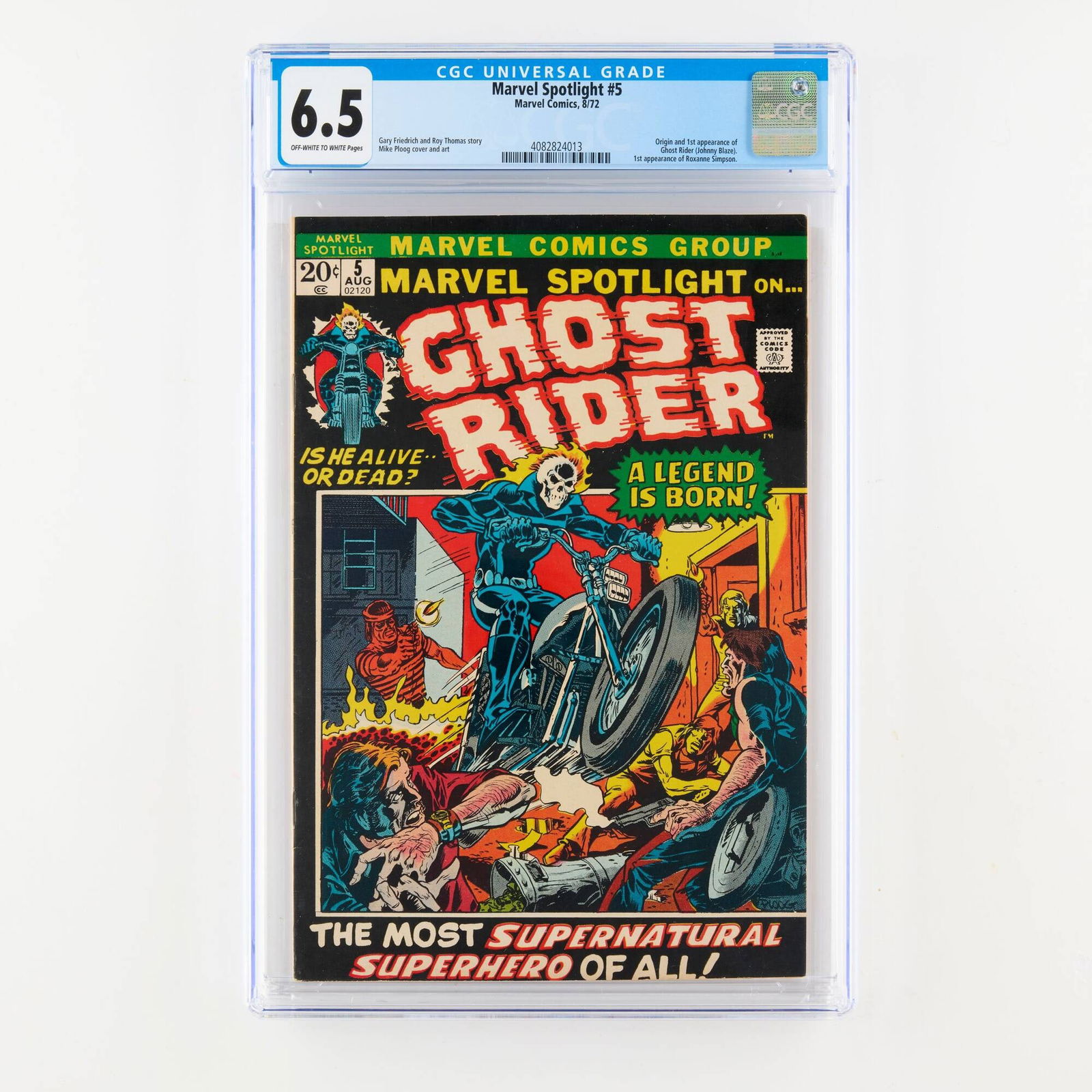 SoldCGC Graded Marvel Comics Marvel Spotlight No. 5 comicCGC Universal Grade 8.5, Off-White pages. August 1972. Gary Friedrich and Roy Thomas story, Mike Ploog cover and art. Origin and 1st appearance of Ghost Rider (Johnny Blaze), 1st appearance of RoxanneSee Sold Price