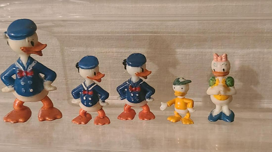 SoldVintage Marx Disneykins Disney Donald Duck Figure HardHand painted hard plastic "Disneykin" figures by the Marx Toy Company. Originally made in the 1960's. Comes with both Donald and Daisy. Original hand pant has mostly come off, so it could be repaintedSee Sold Price
