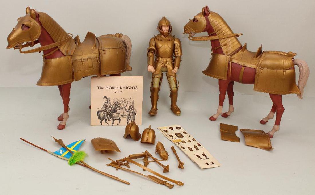 1960's LOUIS MARX "KNIGHT IN ARMOR WITH (2) HORSES IN A
