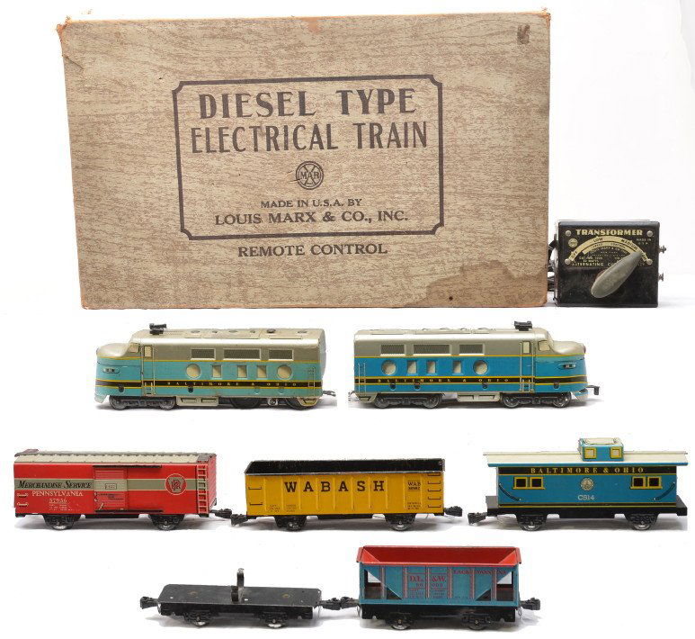 Marx Toy Trains O Gauge 9363 Freight Set with 999 Loco/41895 Union Pacific Diesel A - A Freight Set Marx Toy Trains O Gauge 9363 Freight Set with 999 Loco/41895 Union Pacific Diesel A - A Freight Set Boxed/9757 Allstate Set Box, including 9757 Allstate Set with New Haven Diesel Powered A Unit and ei