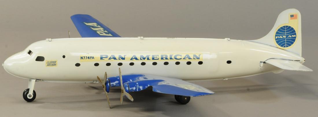 SoldMarx Pressed Steel Large Pan Am DC-4 AirplaneMarx Pressed Steel Large Pan Am DC-4 Airplane. 27 inch wingspan, missing 2 props. PAA World Airways.See Sold Price