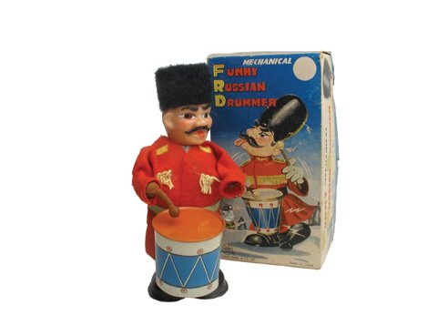 SoldMARX TIN WIND UP MAD RUSSIAN DRUMMER W/ BOXTOY REMAINS IN VERY GOOD WORKING CONDITION. BOX REMAINS NICE, SHOWING SOME WEAR.See Sold Price