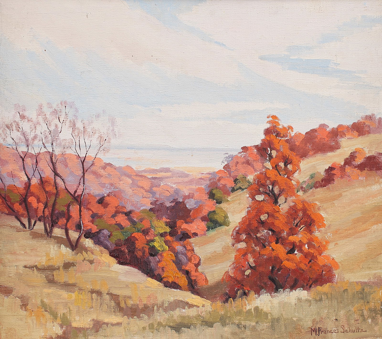 Mary Frances Schultz (Am. 1906-1985), Autumn Landscape, oil on canvasboard