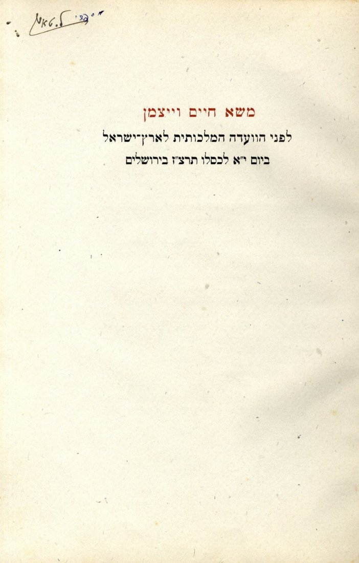 Masa Chaim Weizmann. Jerusalem, 1944. Bibliophile