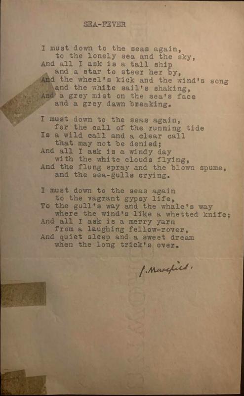 Masefield, John - Poem Signed