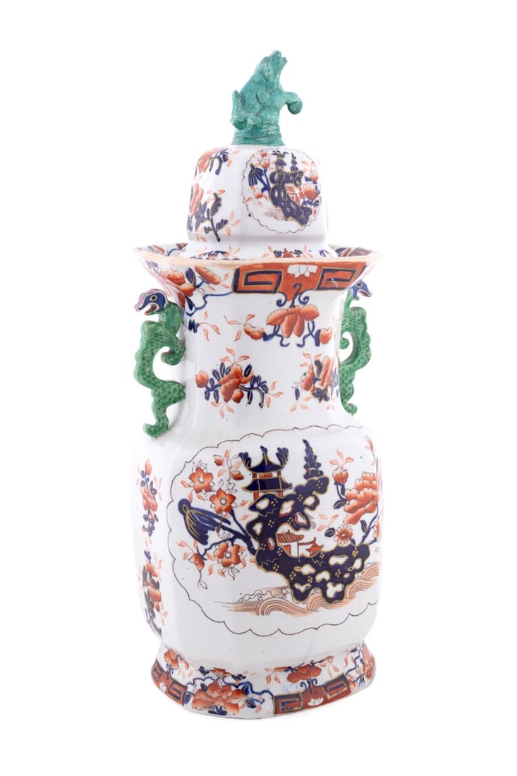 MASON LIDDED IMARI PATTERN VASE, C. 1815-1825