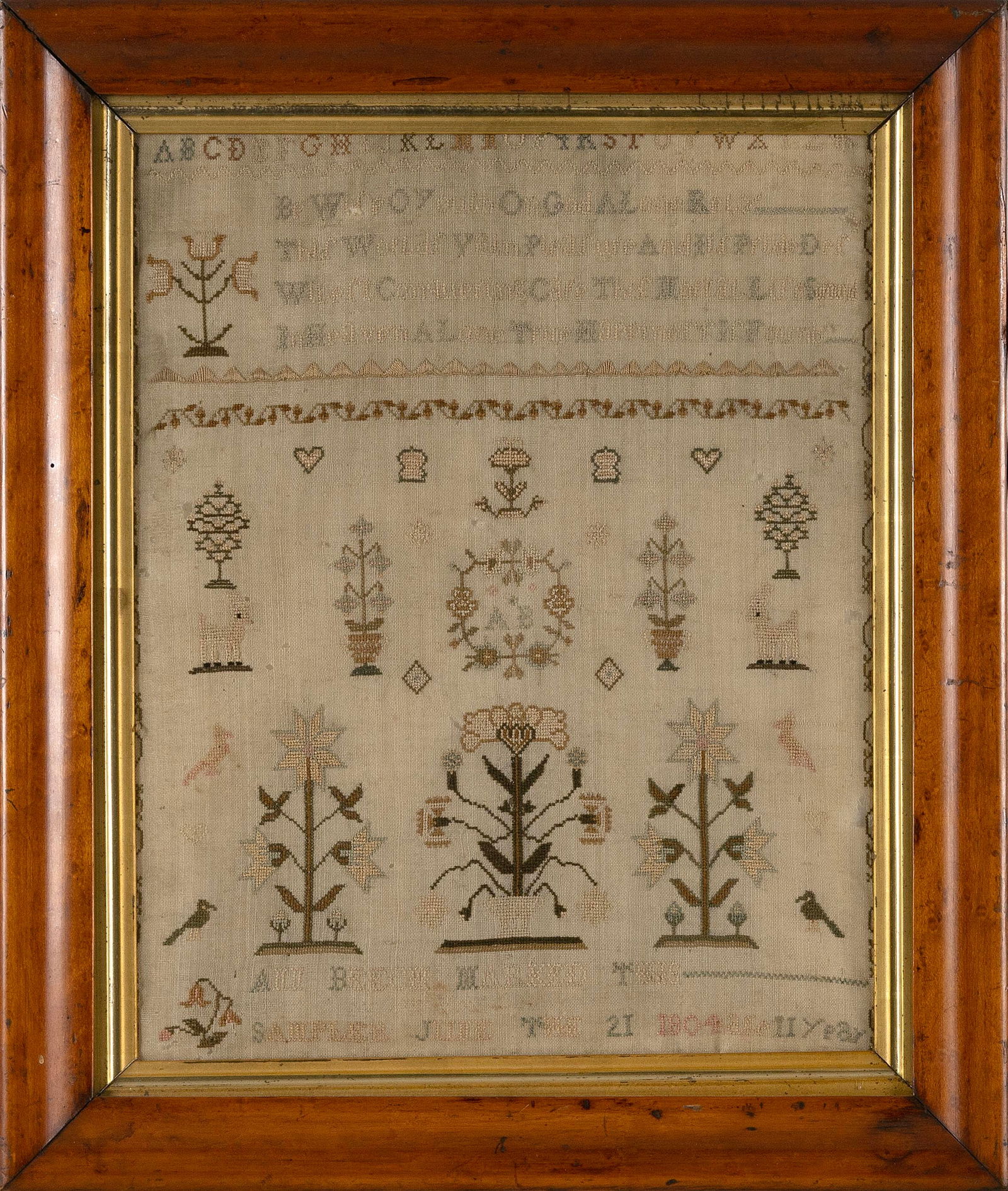 AMERICAN NEEDLEWORK SAMPLER. Frame, 21."h. 23.75"w.Mar 19, 2026English Needlework Sampler6 days LeftSUSAN WHITNEY (AMERICAN) NEEDLEWORK SAMPLER. Frame, 18.25"h. 14"w.Mar 19, 2026FINE AND RARE SUSAN TILTON (DANVILLE, VERMONT, B. 1813) NEEDLEWORK SAMPLER, DATED 1827. Frame, 17"h.Mar 19, 2026MARIA BARTHOLOMEW (AMERICAN) NEEDLEWORK SAMPLER, DATED 1807. Framed, 18.75"h. 19"w.Mar 19, 2026SALLY OSGOOD (ANDOVER, MASSACHUSETTS) NEEDLEWORK SAMPLER, DATED 1808. Frame, 20.5"h. 19.5"w.Mar 19, 2026MARY CARTLIDGE (ENGLISH OR SCOTTISH, B. 1794) NEEDLEWORK SAMPLER. Frame, 16"h. 12"w.Mar 19, 2026ELIZA ELDERD (AMERICAN) NEEDLEWORK SAMPLER, DATED 1806.Mar 19, 2026ZOE DAVIDSON (NEW HAMPSHIRE, B. 1804) NEEDLEWORK SAMPLER, DATED 1817. Frame, 22.5"h. 18.5"w.Mar 19, 2026BETHIAH H. FOSTER (AMERICAN, B. 1830) NEEDLEPOINT SAMPLER. Frame, 15.5"h. 19.75"w.Mar 19, 2026ELIZA ANDERSON (AMERICAN, B. 1824) NEEDLEWORK SAMPLER, DATED 1836. Frame, 19"h. 16"w.Mar 19, 2026ELIZABETH YOUNG (AMERICAN, B. 1748) NEEDLEWORK SAMPLER, DATED 1761. Frame, 9.75"h. 8.25"w.Mar 19, 2026A George III needlework sampler, late 18th/early 19th century,Mar 17, 2026ELIZABETH MORSE (ROXBURY, MASSACHUSETTS, B. 1815) NEEDLEWORK SAMPLER, DATED 1827. Frame, 19.5"h.Mar 19, 2026A Bucks County, Pennsylvania Pictorial Needlework Sampler, Margaret Jamison 1799Mar 15, 2026LUCY BAKER (SHREWSBURY, MASSACHUSETTS, B. 1794) NEEDLEWORK SAMPLER, DATED 1808. Frame, 18.5"hMar 19, 2026