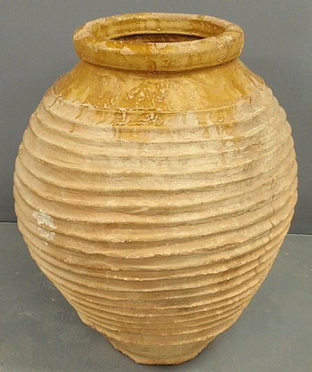 Massive earthenware pottery olive jar, the upper s