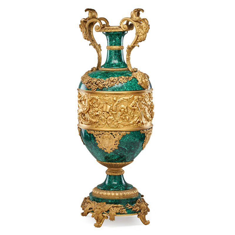 MASSIVE GILT BRONZE AND MALACHITE VASE