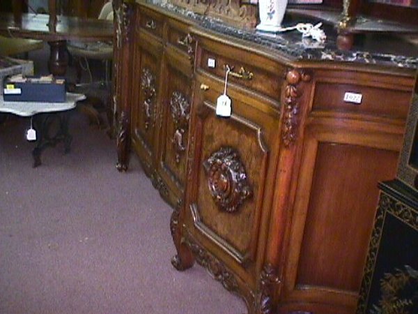 MASSIVE MARBLE TOP SIDEBOARD CARVED