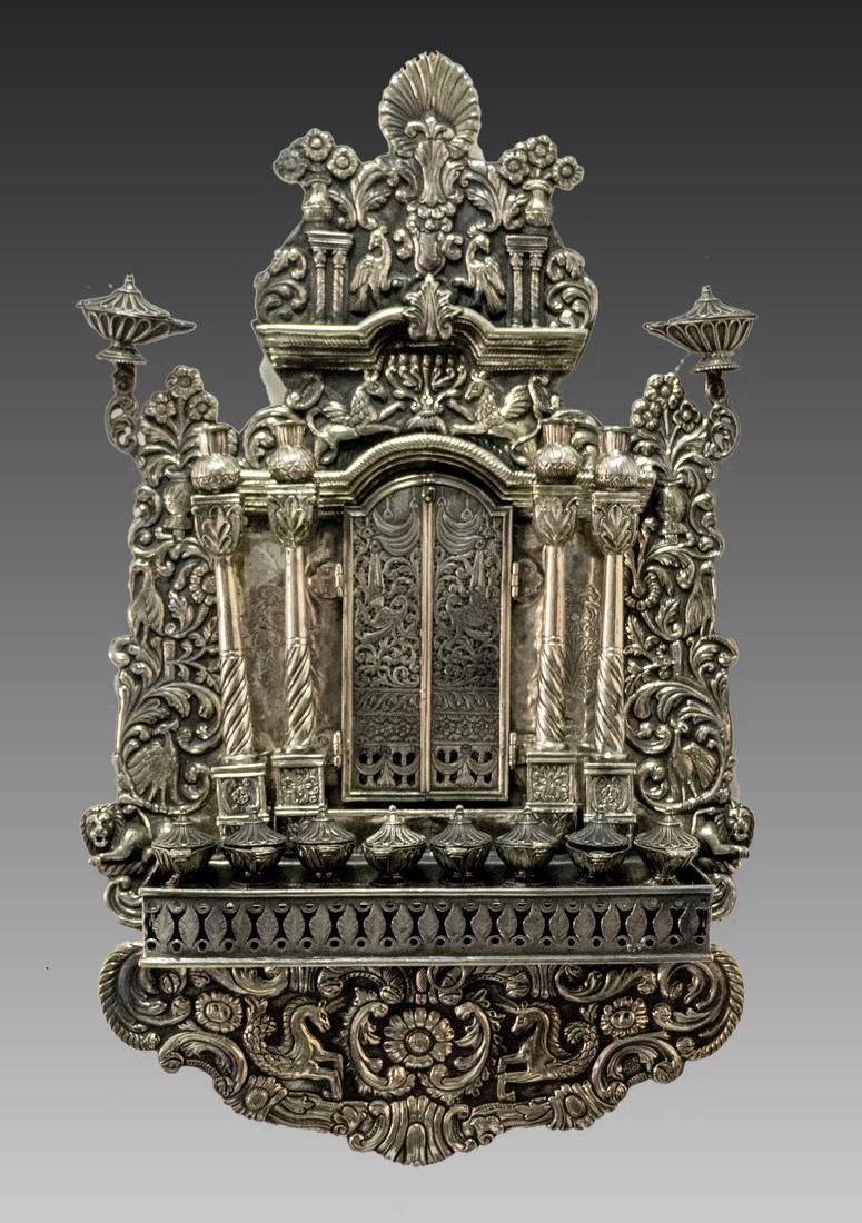 JEWISH SILVER HANUKKAH MENORAH LAMP, 18-19th C.