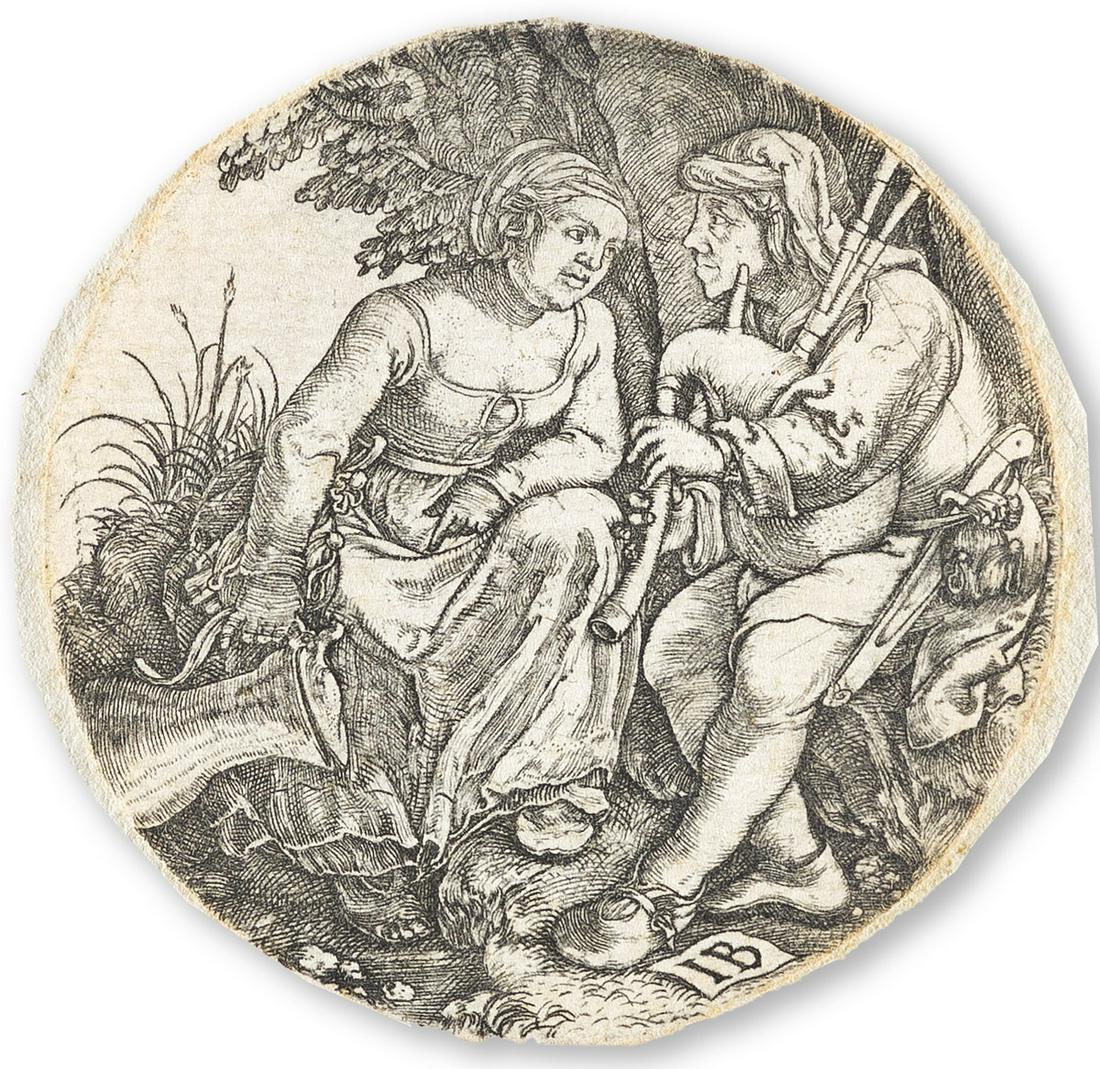 MASTER I. B. The Bagpipe Player with his Lover.