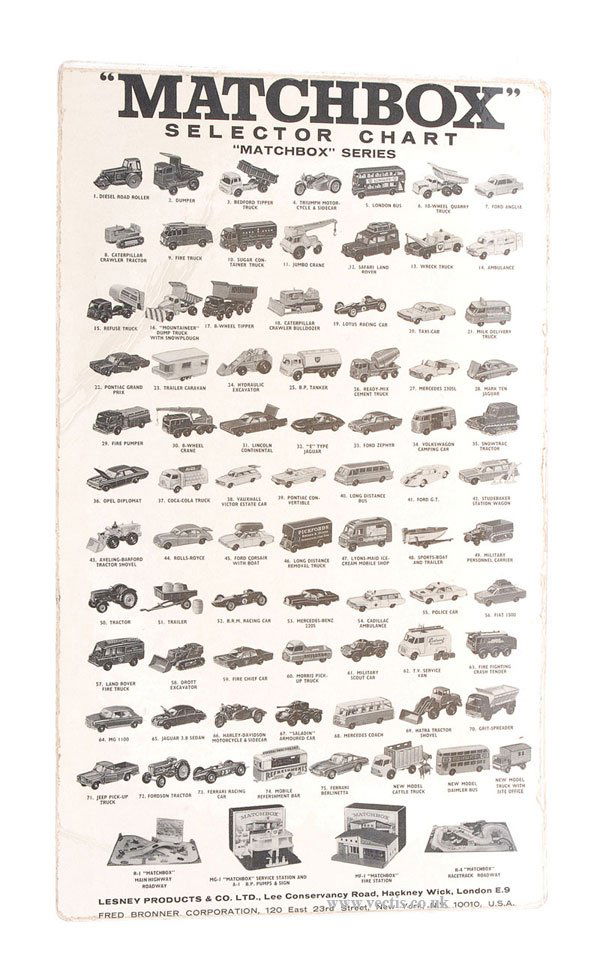 Matchbox 1966 Fred Bronner Selector Chart
