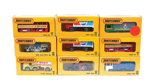 ASSORTED DINKY TOYS DIE-CAST COMMERCIAL VEHICLE TOYS, LOT OF FOUR5 days LeftASSORTED ENGLISH LESNEY CO. MATCHBOX SERIES DIE-CAST VEHICLES AND EQUIPMENT TOYS, LOT OF NINE5 days Left4 Matchbox Lesney major packsMar 14, 2026Matchbox No 32C2 Leyland BP Petrol Tanker in Blister PackMar 14, 2026A Collection of Ten Vintage Matchbox Lesney Die-Cast VehiclesMar 14, 2026A Collection of 10 Vintage Matchbox Series Die-Cast VehiclesMar 14, 2026A Collection of 10 Matchbox Lesney Series Die-Cast VehiclesMar 14, 2026A Collection of Vintage Lesney Matchbox Die-Cast ToysMar 14, 20267 Vintage Matchbox Lesney Major and Accessory PacksMar 14, 2026A Collection of 10 Vintage Matchbox Series Die-Cast Vehicles by LesneyMar 14, 20264 Vintage Matchbox Lesney Die-Cast VehiclesMar 14, 2026A Collection of 10 Vintage Lesney Matchbox Series Die-Cast VehiclesMar 14, 2026A Collection of 10 Lesney Matchbox Series Die-Cast VehiclesMar 14, 202610 Matchbox Series Lesney Diecast VehiclesMar 14, 202610 Lesney Matchbox Series Die-Cast VehiclesMar 14, 202610 Matchbox vehiclesMar 14, 2026