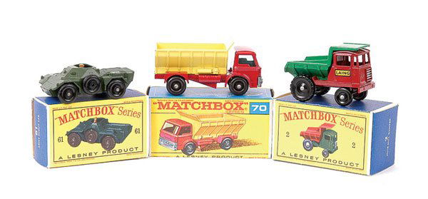 Lot 4 Pressed Steel Toy TrucksMar 07, 2026Lot Pressed Steel Trucks and Parts As IsMar 07, 2026Large Lot Vintage Diecast Cars / Trucks Corgi Hot Wheels Lesney Matchbox Majorette & etcMar 02, 2026ASSORTED DINKY TOYS DIE-CAST COMMERCIAL VEHICLE TOYS, LOT OF FOURMar 05, 2026ASSORTED DINKY AND CORGI TOYS DIE-CAST EQUIPMENT TOYS, LOT OF FOURMar 05, 2026ASSORTED ENGLISH LESNEY CO. MATCHBOX SERIES DIE-CAST VEHICLES AND EQUIPMENT TOYS, LOT OF NINEMar 05, 2026LOT OF TOY CARS AND BUS5 days LeftLarge Lot of Mixed Cars Matchbox, Hot Wheels6 days LeftMatchbox and Gate, Die-Cast Collectible Vehicle Collection, Die-Cast Metal, 1990s-2000s5 days Left3pc Tootsie Toy Trucks TEXACO tanker, DUMP, Tow truckMar 02, 2026Tonka Die-Cast Toy Truck Lot Featuring Bell System, Mack, and Garbage Truck ModelsMar 01, 2026Matchbox, 9 Modelle5 days LeftThree Matchbox Toy VehiclesMar 05, 2026Matchbox New 42 - Mercedes Container Truck4 days LeftThree Lesney Matchbox Series Toy Cars - Ford GT, Rolls Royce Silver Shadow, and Field Car (Missing5 days LeftPre-Production Matchbox Car Sets & Fire Helmets7 days Left