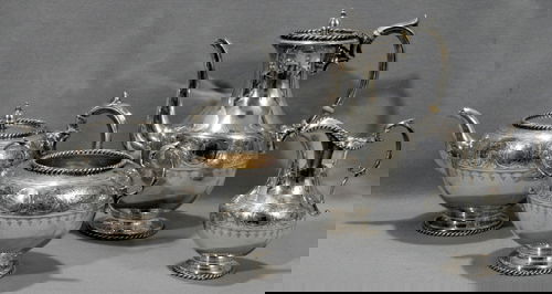 MATCHING SILVER PLATE SET, COFFEE, TEA, CREAMER