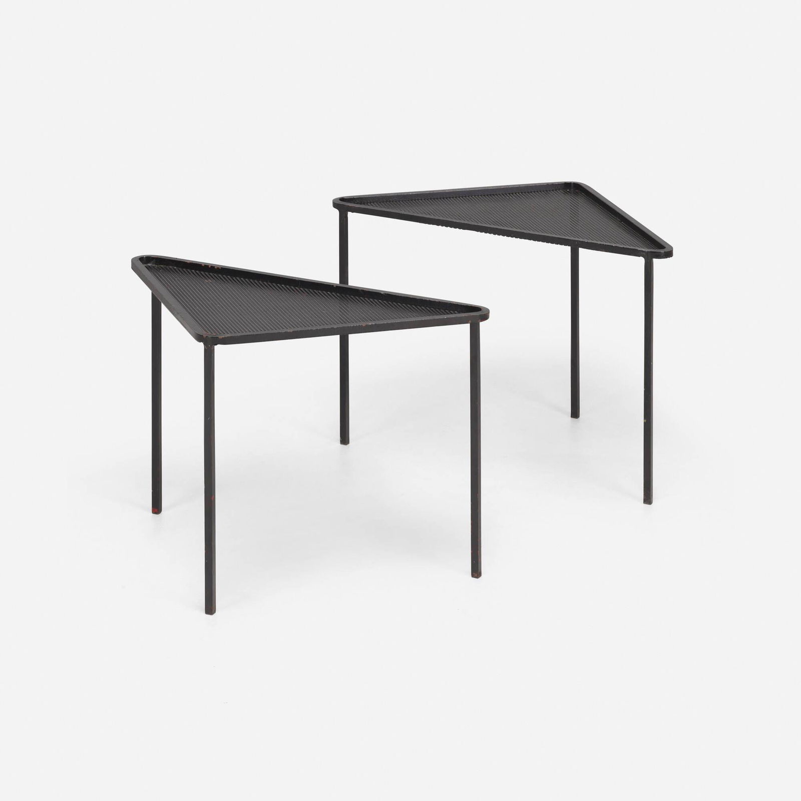 Ico Parisi Style, Ebonized Wood, Brass, Sculptural Side Tables, Europe, 1950sTony Paul Style, Lacquered Iron, Walnut, Side Tables, USA, 1960sRoger le Bihan .Paire de tables basses.Structure carrée en acier tubulaire laqué noir, avec3 days LeftMathieu Matégot (1910-2001) Set of three 'Soumba' nesting tablesMar 31, 2026Charles and Ray Eames IT-1 Occasional Tables15 mins Leftxx Charlotte Perriand (1903-1999) Pair of tablesMar 31, 2026PAIR OF PAINTED IRON AND PARCHMENT END TABLES IN THE MANNER OF JEAN-MICHEL FRANK.Mar 25, 2026