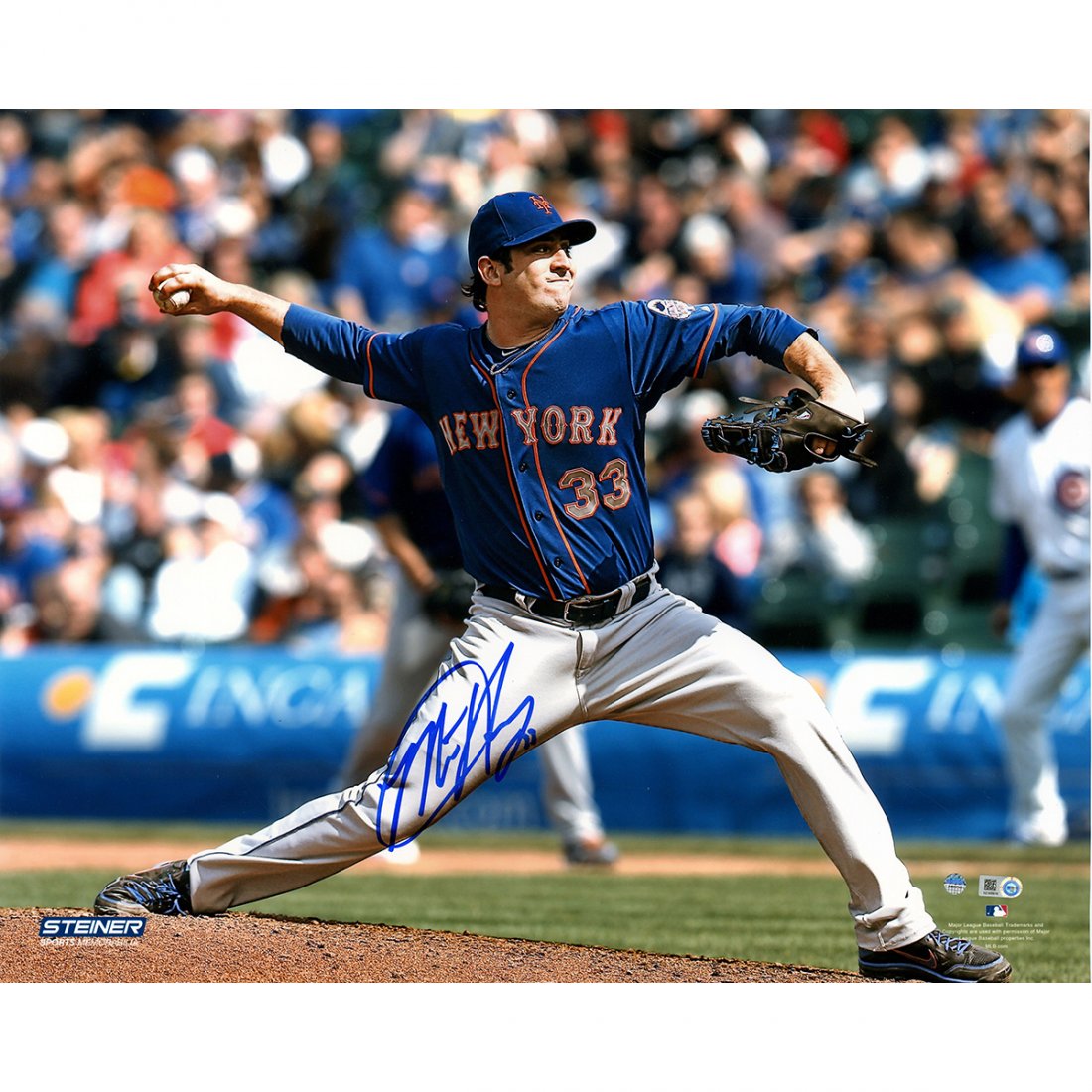 Matt Harvey Signed Pitching Blue Jersey Horizontal 16x2