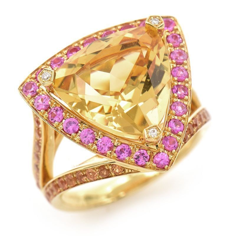 14k Yellow Gold 3.70 Yellow Beryl 1.57ct Diamond Ring