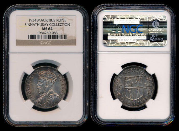 Mauritius KGV Rupee 1934 NGC MS64