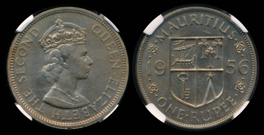 Mauritius QEII Rupee 1956 NGC MS64