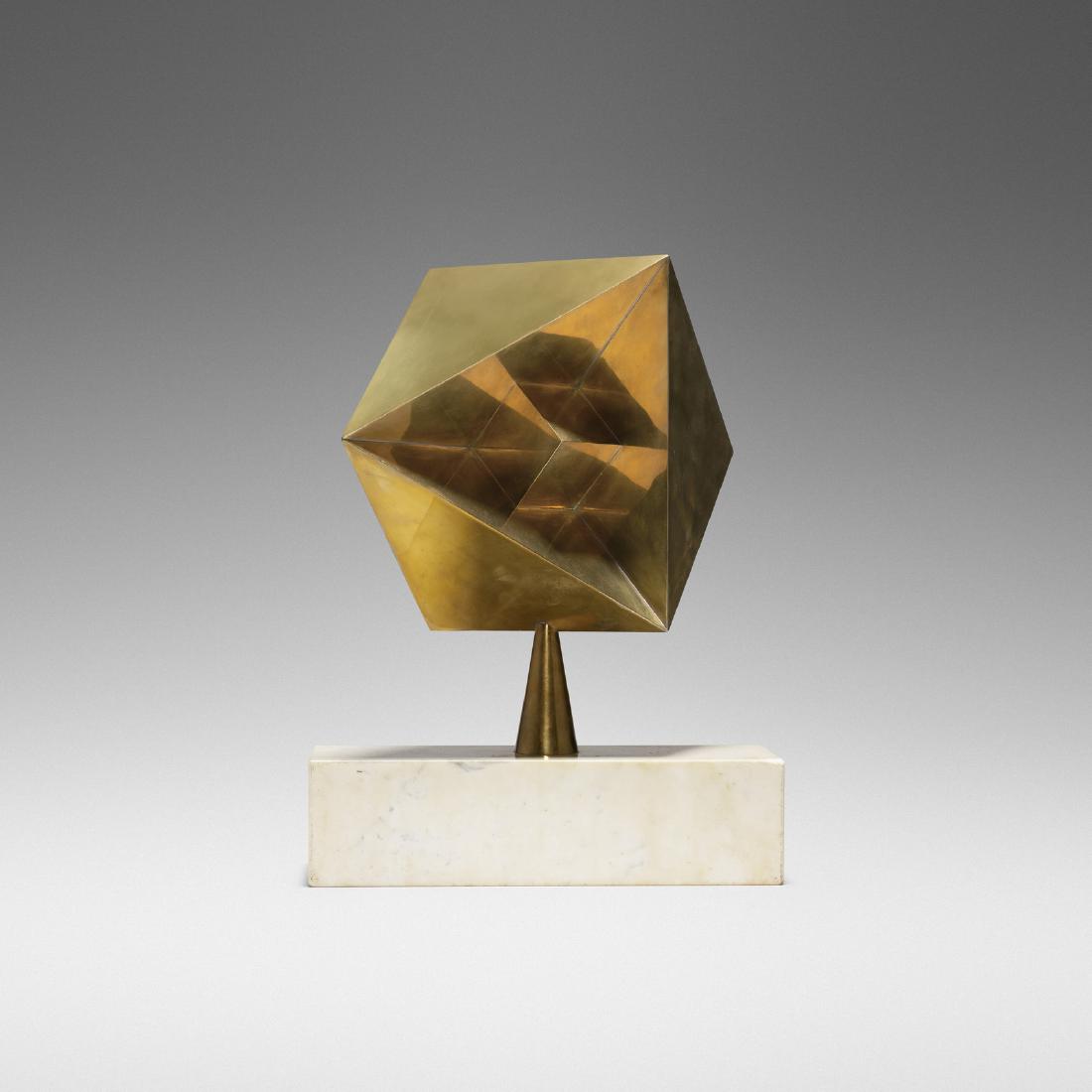 SoldMax BILL Gilt Brass SculptureMax Bill (Swiss 1908-1994) "Einheit aus drei gleichen volumen" or Entity made up of three identical volumes., signed on edge of one volume "Bill 61-63", [13" H x 16" W x 13" D]. Overall condition, pocSee Sold Price