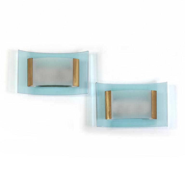 PAIR OF BRASS & GLASS CONTEMPORARY WALL SCONCES