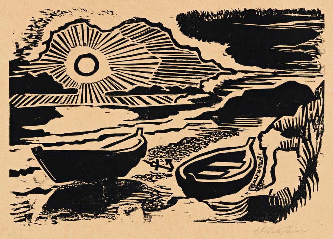 MAX PECHSTEIN Untergehende Sonne (Ostseestrand).