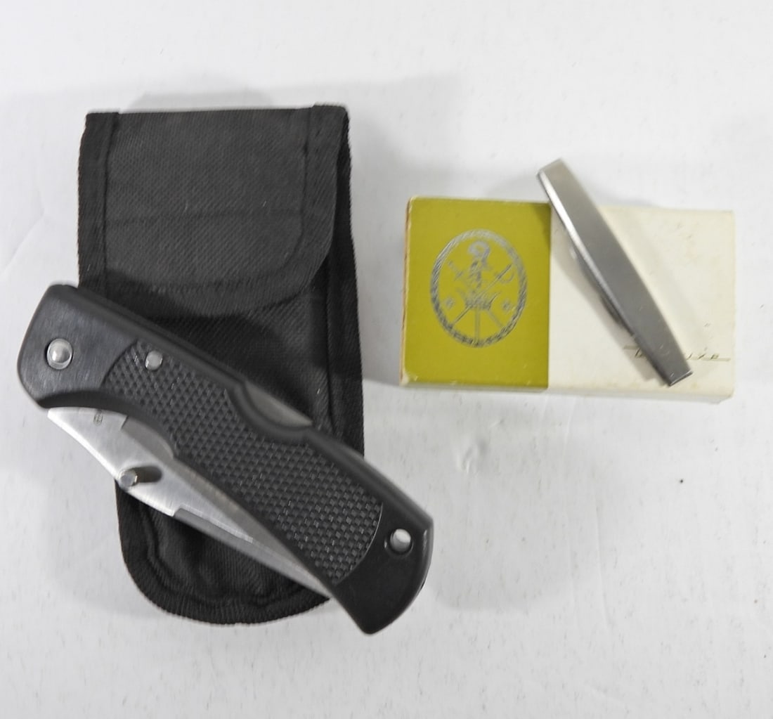 LOT OF 33 POCKET AND FOLDING KNIVESMar 22, 2026LOT OF PUMA, KERSHAW, BUCK AND SPYDERCO BLADESMar 22, 2026THIS IS A LOT OF 63 FIXED BLADE AND POCKET KNIVESMar 22, 2026This lot will consist of four (4) Lock Blade Folding Knives to include: (1) "BUCK" marked SwitchMar 28, 2026LOT OF 4 VERY FINE CUSTOM KNIVESMar 22, 202612 Pack Frost Cutlery Delta Command II Folding Knives NIB12 Pack Frost Cutlery Wildlife Officer Small Folding Knives NIBR HINDERER, HIBBEN AND R.W. WILSON KNIVESMar 22, 2026Glinting Silver Folding Damascus KnifeMar 25, 2026Glinting Silver Folding Damascus KnifeMar 17, 2026Glinting Silver Folding Damascus KnifeMar 27, 2026Glinting Silver Folding Damascus KnifeMar 26, 20269" Solid Steel Folding Hunting Knife With Leather SheathMar 25, 20269" Solid Steel Folding Hunting Knife With Leather SheathMar 17, 20269" Solid Steel Folding Hunting Knife With Leather SheathMar 27, 20269" Solid Steel Folding Hunting Knife With Leather SheathMar 26, 2026