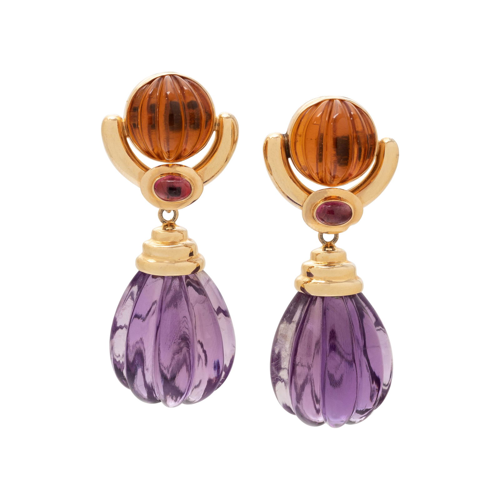 0.24 CARAT ROUND DIAMOND CABOCHON LAPIS LAZULI 18K YELLOW GOLD CLIP ON EARRINGSMar 03, 2026Cartier Delices de Goa 18K Yellow Gold Coral Amethyst EarringsFeb 24, 2026Harbor Diamonds Multi-Colored Gemstone Drop Earrings 18K Rose Gold6 hrs Left0.88 Ctw Multi Stone 10K Rose Gold Earrings21 hrs LeftEstate Citrine Multi Gem Heart 18K Gold Statement Drop Earrings 27.5 Grams2 days LeftStylish and Exotic 18k Yellow Gold Amber Stone Drop Earrings, Irregular Cut - 8.32 gr5 days LeftTourmaline 8.30ct Diamond Pearl 18K Yellow Gold Dangle Earrings 19.9 Grams2 days LeftA Pair of Bi-Color Gold, Cultured Pearl, Gem-Set and Diamond EarclipsMar 03, 202614k Yellow Gold 11.31ct Citrine 1.01ct Sapphire 1.00ct Diamond Earrings2 days Left14kt Yellow Gold 0.3ctw Diamond Earrings1 day LeftA Pair of 18K Gold, Onyx, Ruby and Diamond EarclipsMar 03, 2026VINTAGE CABOCHON CITRINE & DIAMOND LEVERBACK EARRINGFeb 28, 2026A Pair of Gold, Amethyst and Diamond EarringsMar 03, 2026NEW 14K YELLOW GOLD PURPLE TELEPHONE CZ STUD EARRINGSMar 15, 202614K Gold 24.04 Citrine & 1.30cts Diamond Earrings3 hrs Left14K Gold 24.04 Citrine & 1.30cts Diamond Earrings1 day Left