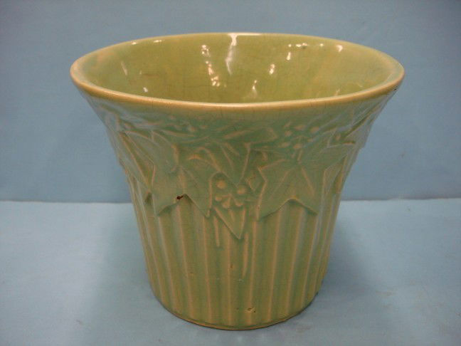 McCoy Springwood Pattern Footed Planter in Mint Green Glaze