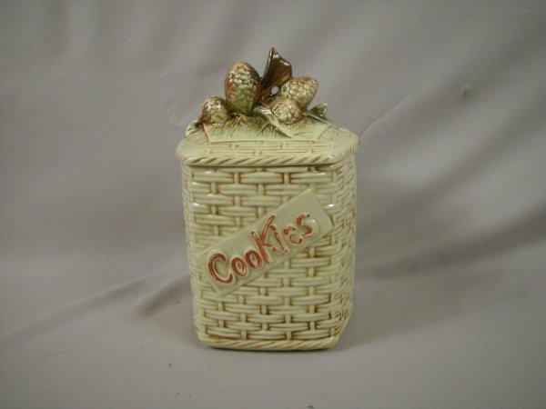 McCoy pine cones on basket cookie jar