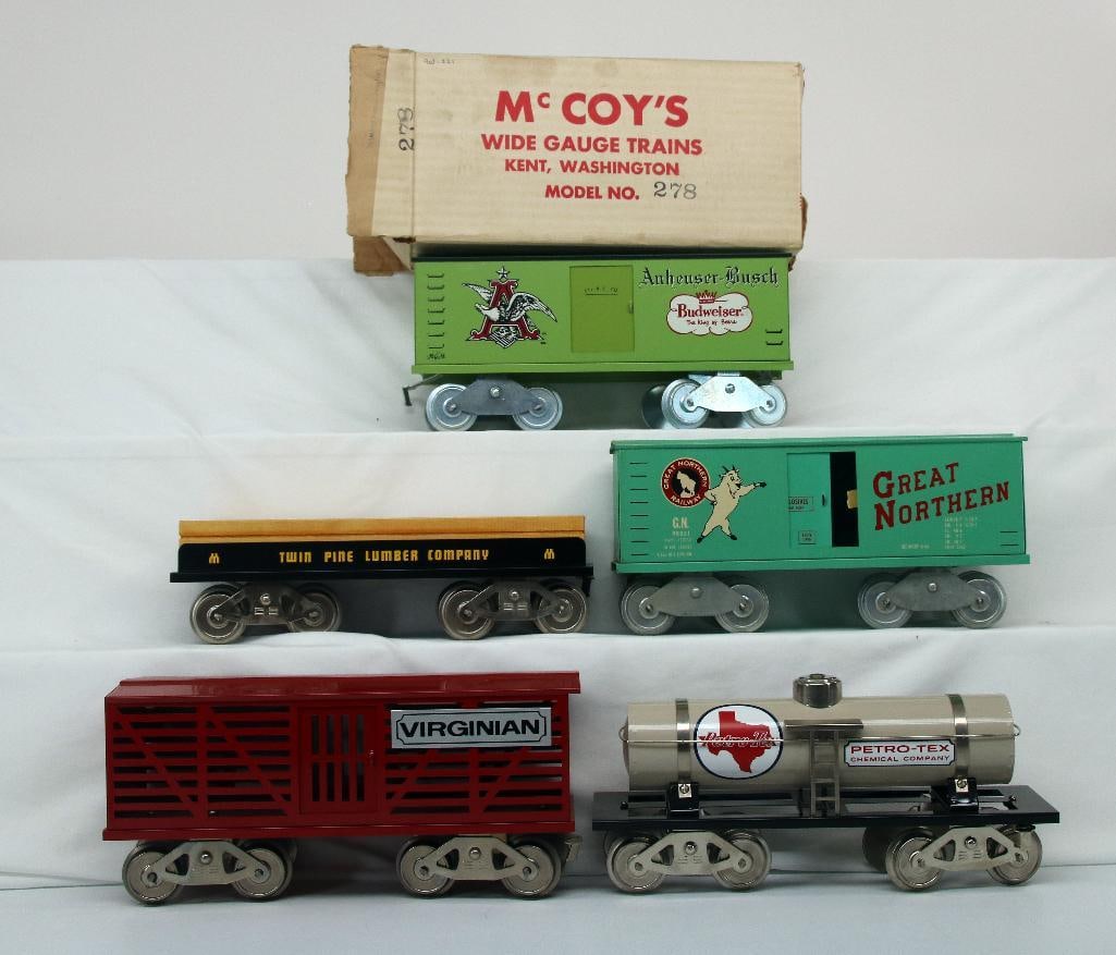 McCoy Standard Gauge Five (5) Assorted Freight Cars