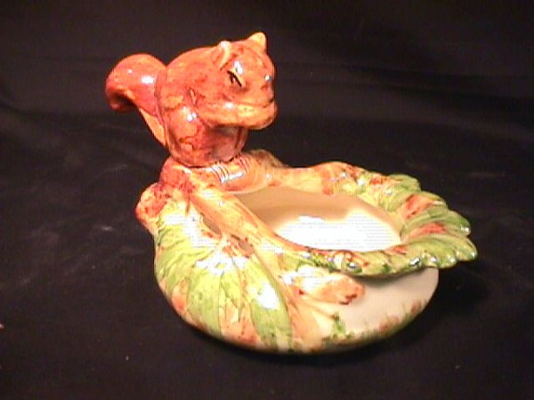 McCOY STYLE unsigned POTTERY NUT BOWL W SQUIRREL