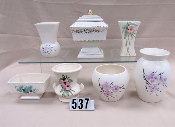 McCOY WEDDING JAR & 6 ASSORTED VASES: