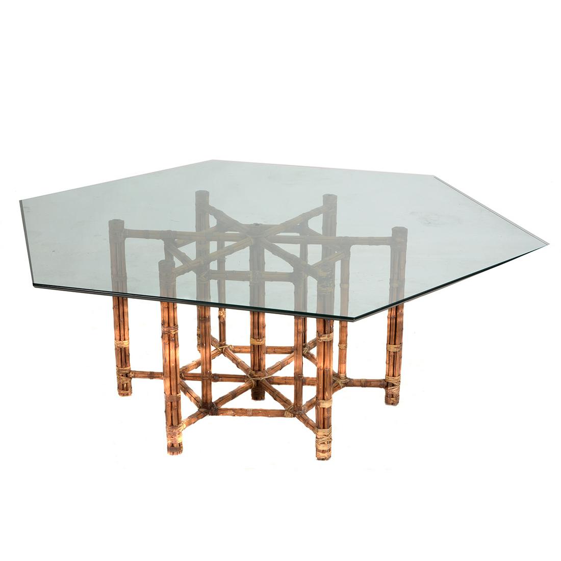 McGuire Bamboo and Glass Dining Table.