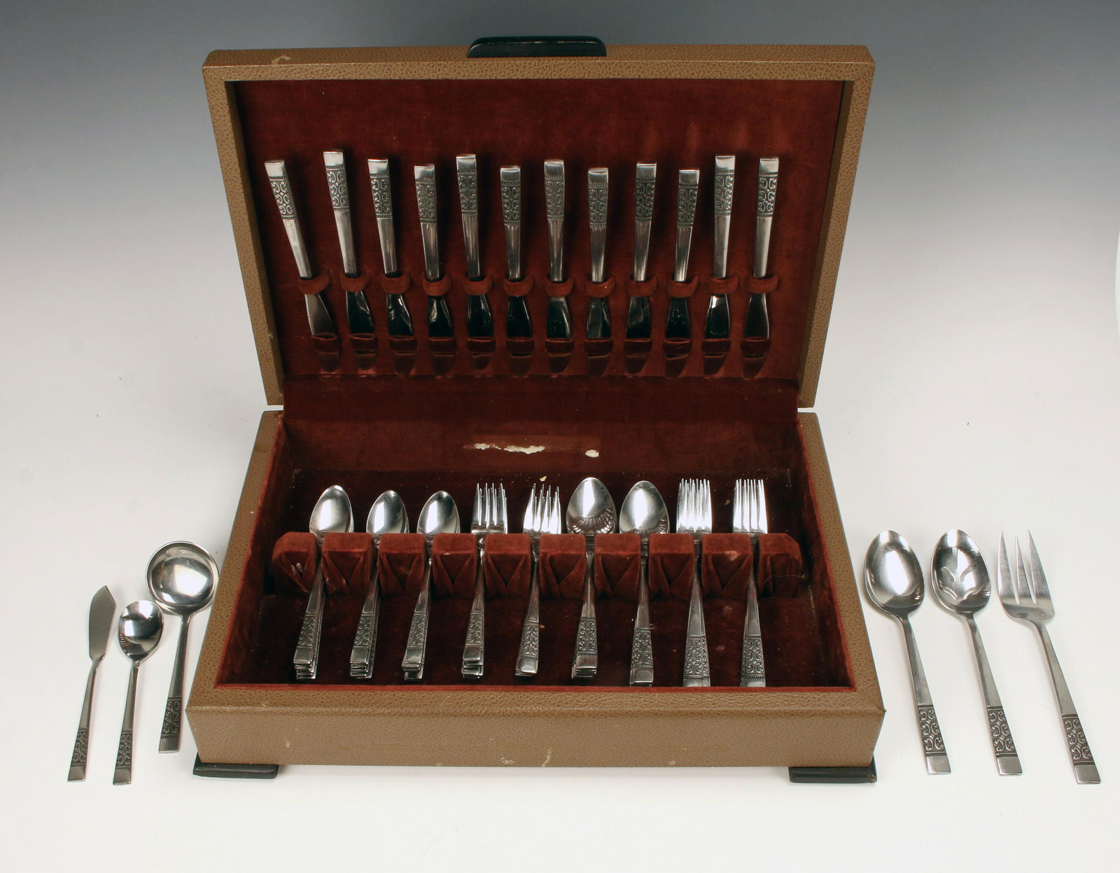 Sterling Silver Handled Estate Serving FlatwareFeb 24, 202683 Piece MCM Sterling Silver Gorham "Willow" Flatware SetFeb 28, 2026(130pc) GORHAM "HUNT CLUB" STERLING SILVER FLATWARE SERVICE, C.19306 days LeftTuttle Sterling Silver Flatware SetFeb 24, 2026Wallace Rose Point Sterling flatware in velvet lined box, 11 knives, 12 salad forks, 12 dinnerFeb 24, 2026International Sterling Silver Melody Flatware Set 53 Pcs for 8 Mid-Century ModernFeb 27, 202655 Piece Sterling Silver Wallace "Saxon" Flatware SetFeb 28, 2026Designer Stainless Steel Flatware Set for 12 - 62 Pieces with Bonus Storage ChestMar 04, 202672 Piece Sterling Silver Frank Smith "Federal Cotillion" Flatware SetFeb 28, 2026Westmorland Lady Hilton Sterling Silver Flatware Set 47 pcs Service for 82 days LeftTowle Silver Flutes Sterling Silver Flatware Set for 12 - 107 Pieces with Storage ChestMar 03, 2026Vision International Sterling Silver Flatware Set for 12 48 Pcs Mid-Century ModernMar 01, 2026Designer Mixed Stainless Steel Flatware Set for 12 - 62 Pieces Modern Patterns2 days LeftDesigner Stainless Steel Flatware Set 62 Pieces Service for 12 Modern Patterns2 days LeftOnslow Sterling Silver Flatware Set 55 pcs for 10 by Marshall Fields5 days LeftTuttle Onslow Sterling Silver Flatware Set for 12, 77 Pieces with Storage ChestFeb 27, 2026