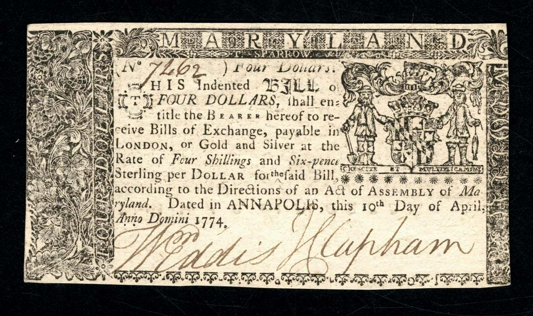 1774 $1 (4 Shillings & 6 Pence) Maryland Colonial Note PMG V - FR. MD-66 April 10SEUYCO$310Feb 23, 2026