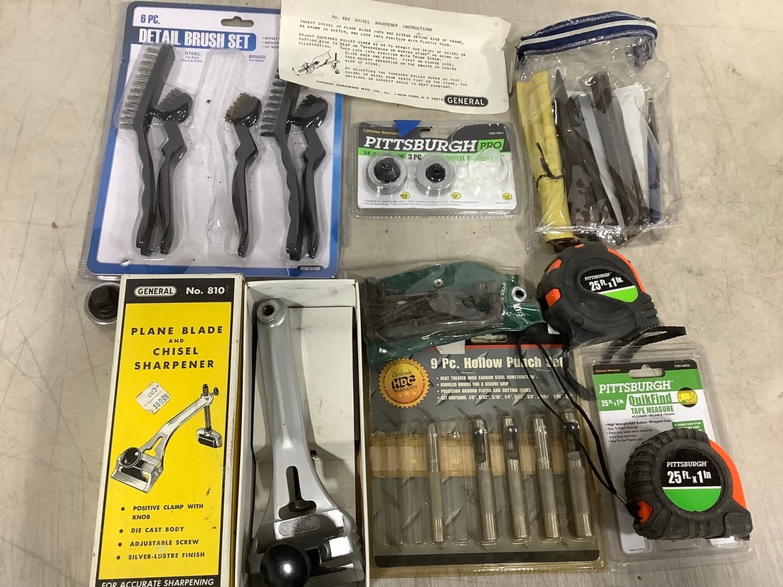 Measuring Tapes, Detail Brush Set, Plane Blade/Chisel Sharpener, and more