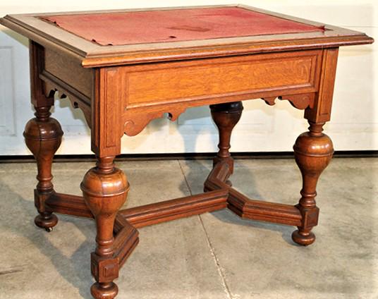 SoldAntique solid quartersawn oak desk, highly carved paw footAntique solid quartersawn oak highly carved paw foot one drawer desk, top has some separations, structurally sound and in good condition for age, nicely carved, 48"l x 28"w x 30"hSee Sold Price