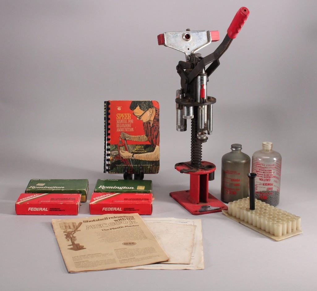 Frankford Arsenal, Labradar, and Winchester Lot of Modern Shooting and Reloading AccessoriesFeb 21, 2026Lyman Ideal No. 55 and Vintage Powder Measures Lot of Three Reloading ToolsFeb 22, 2026RCBS Omark Industries The Green Machine Progressive Reloading Press Lot, circa 1970s-1980sFeb 21, 2026Gun Show LotLee and Hornady Ammunition Reloading Equipment, Powder Measure and Case Activated Drop, CircaFeb 22, 2026A Pacific Gunsight Company Deluxe Powder and Bullet Scale and a Collection of Reloading AccessoriesFeb 21, 2026Hornady Lock-N-Load AP Progressive Reloading Press System, Serial 61814, ModernFeb 22, 202625 Rounds Federal 12GA, Empty Monark box & moreVintage Bair Reloading Press, Herter's Case Gauge, and Large Lot of Shooting AccessoriesFeb 21, 2026Acc-U-Ream Mark I 12-Gauge and Lee Pistol Reloading Kit, Vintage Hand Loading Tools, c. 1960s-1980sFeb 22, 2026Mixed Rifle ammunition and brass casesMixed Caliber Rifle Ammunition295 Rounds .45 Auto RIM Ammunition & 95 CasingsMixed Ammunition and gun cleaning items250 Rounds Mixed 7MM Mauser AmmunitionAmmunition: 200 rds .380 AUTO & 30 rds .38 Special