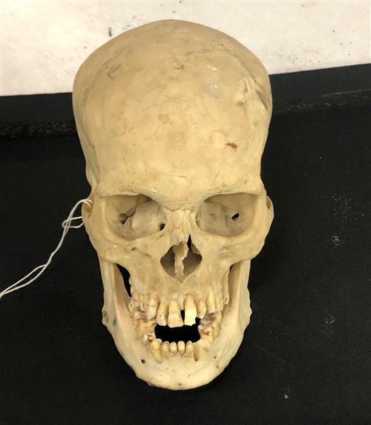 SoldFULLY ARTICULATED MEDICAL SKULLFULLY ARTICULATED MEDICAL USE HUMAN SKULL WITH ARTICULATED JAW & REMOVABLE CAVALARIUM - 9" x 5" x 6 1/2"See Sold Price