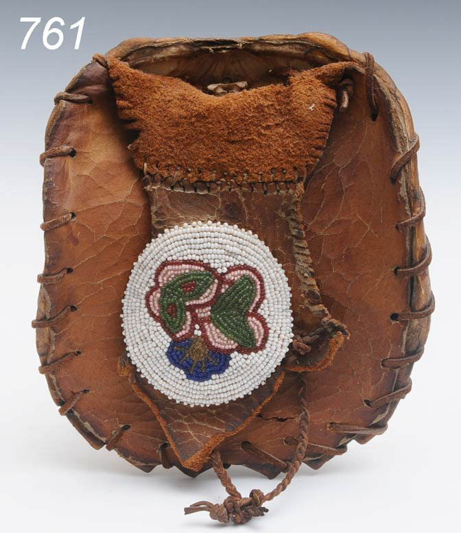 MEDICINE BAG tortoise shell, hide and beadwork Sh