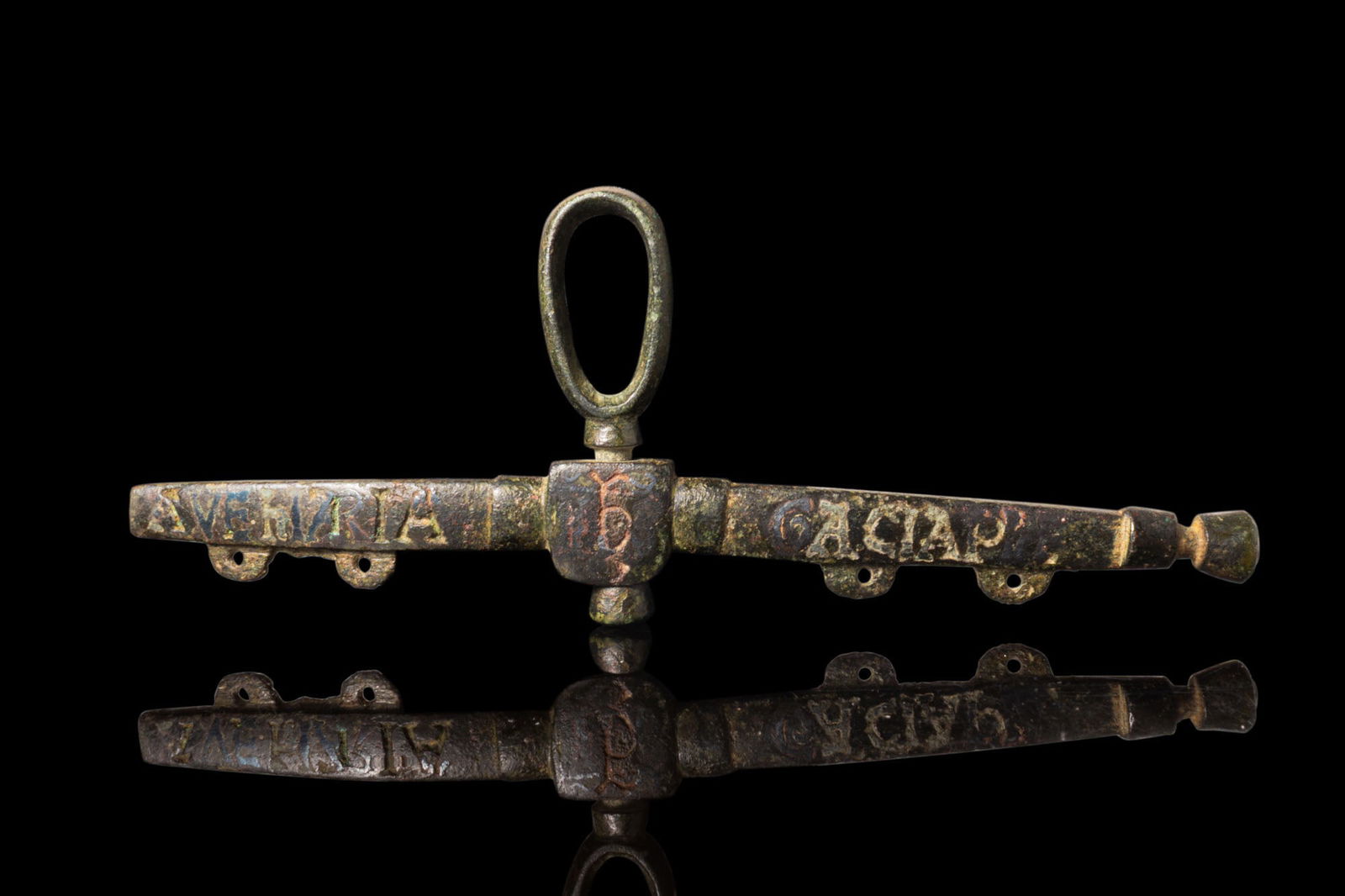 MEDIEVAL BRONZE PURSE BAR INSCRIBED WITH 'AVE MARIA'