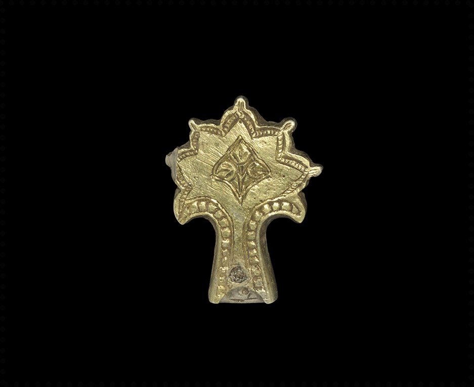 Byzantine Silver-Gilt Box Mount with Scroll Cross