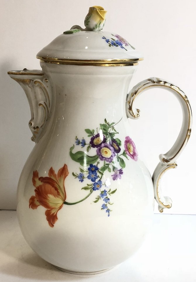 Meissen coffee pot, sugar bowl and cream jug with hand-painted flowers and gold decoration. LidsChairish Auctions4.5(10.3k)$130